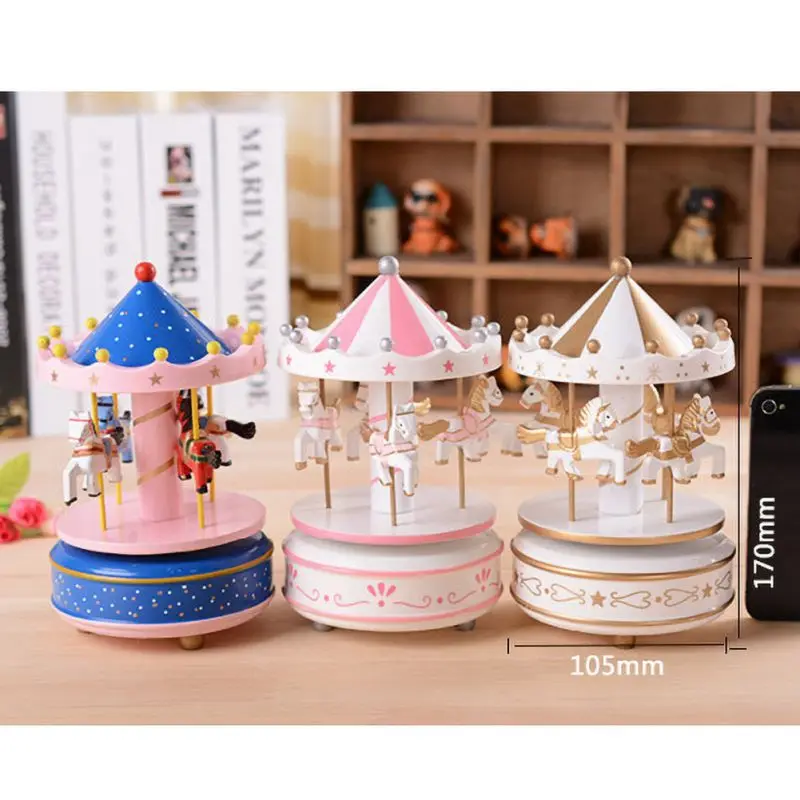 Best Cute Music Box Wooden Plastic Merry Go Round Horse Christmas Birthday Gift Clockwork Mechanism Caro