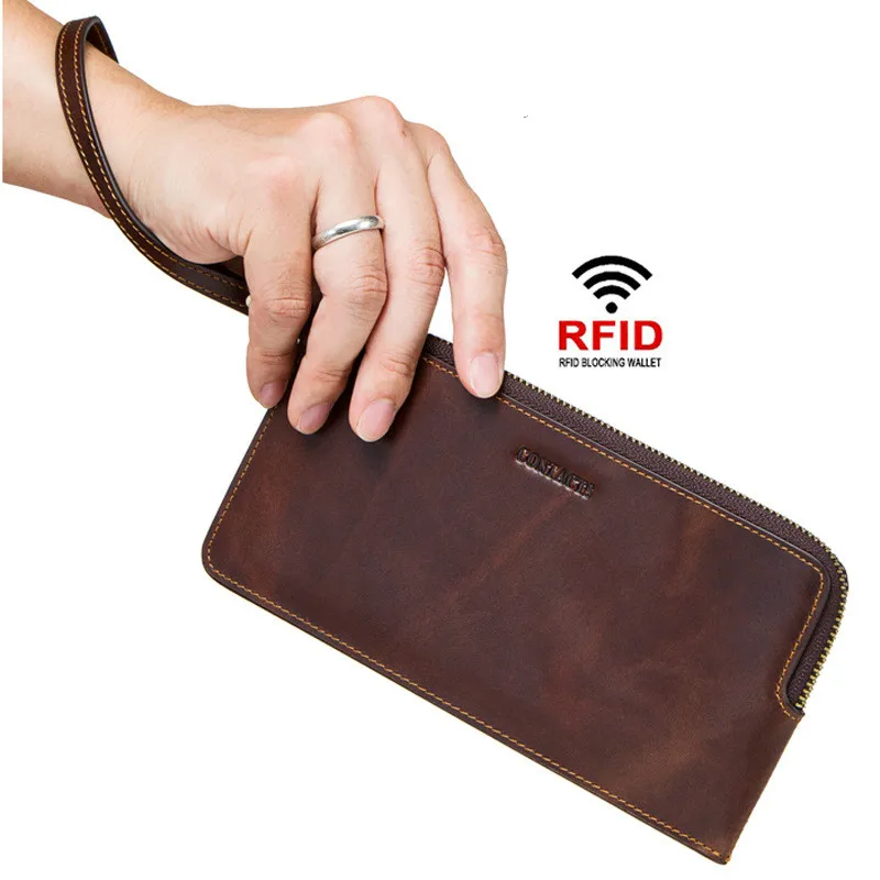 HOT SALE RFID wallet retro mad horse oil leather men's anti-theft hand bag dermis multi-function master grab
