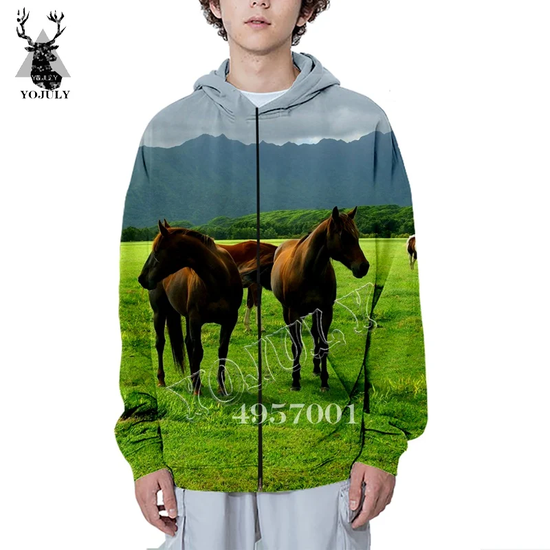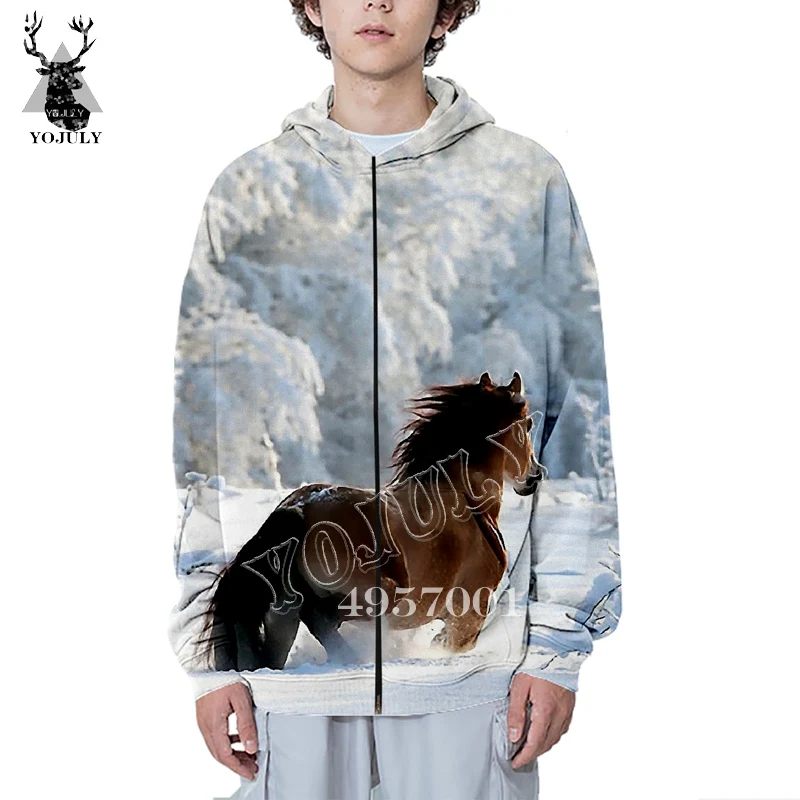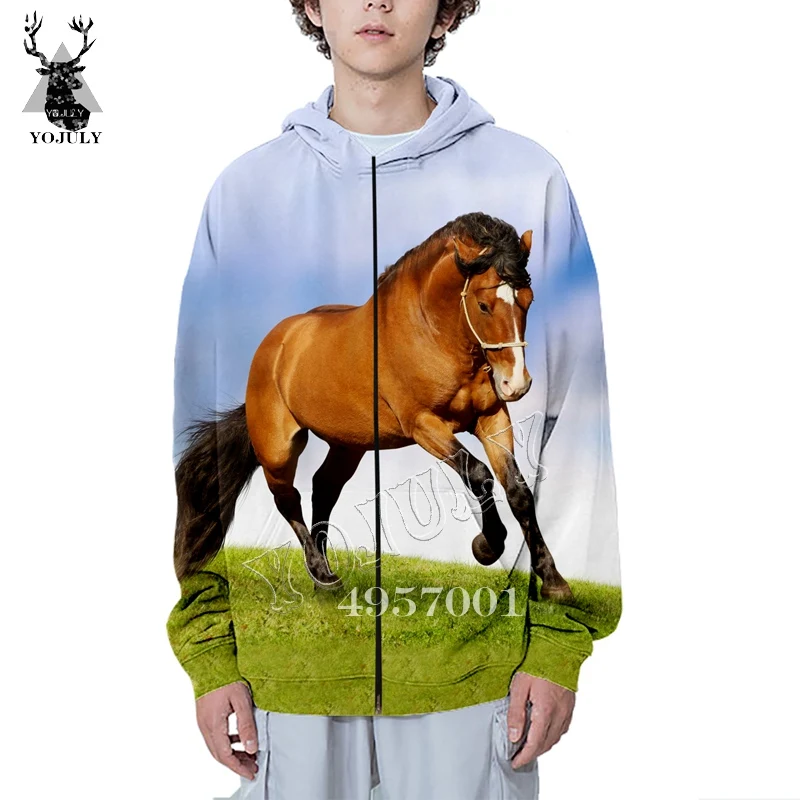 Novelty Street wear Men Fashion Zip Hoody Coat Unisex Casual Sweatshirt Horse Funny 3D Print Haraju