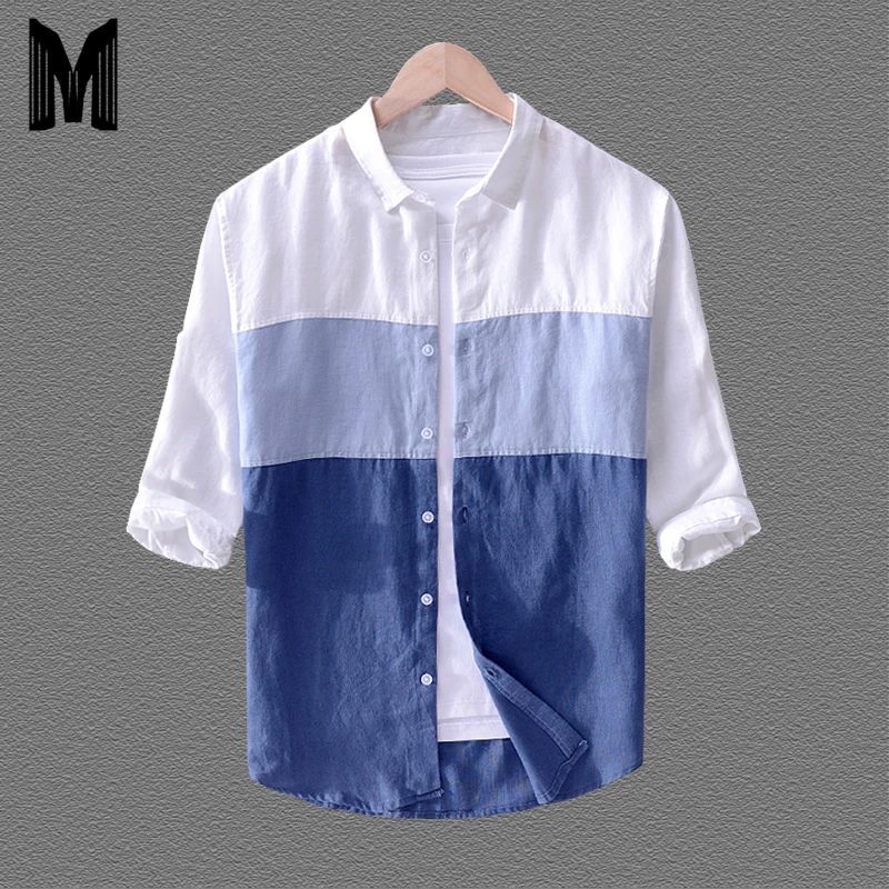 ORIGINAL 2019 Mens Dress Shirts 100%Linen Casual Slim White Three Quarter Sleeve Brand Clothing Plus Size M-