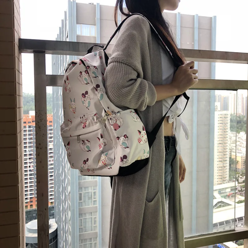 Hot Sale 13*25*36cmcute Print Cartoon Cartoon Canvas Backpack Travel Plush Kitty Bag